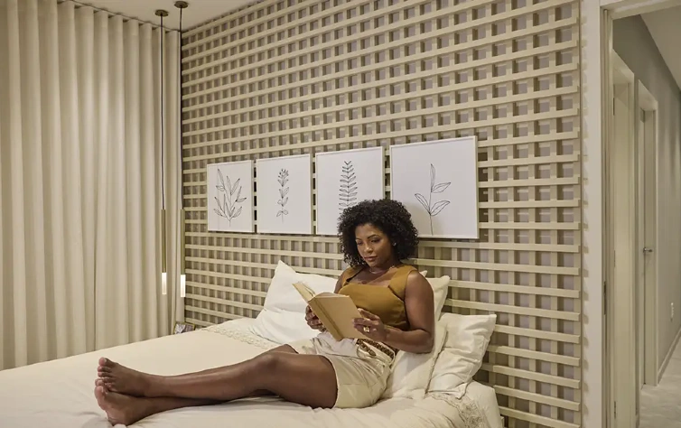 Já as paletas inspiradas na natureza continuam fortes. Tons de terra, verde e azul suave ajudam a criar uma atmosfera tranquila e convidativa, perfeita para quem quer um ambiente com cara de pausa.
