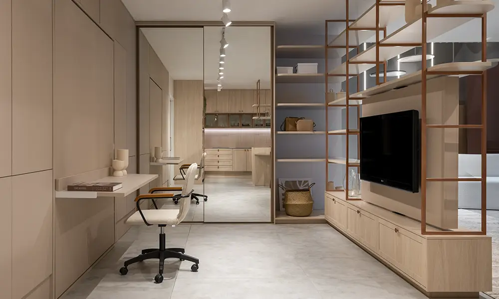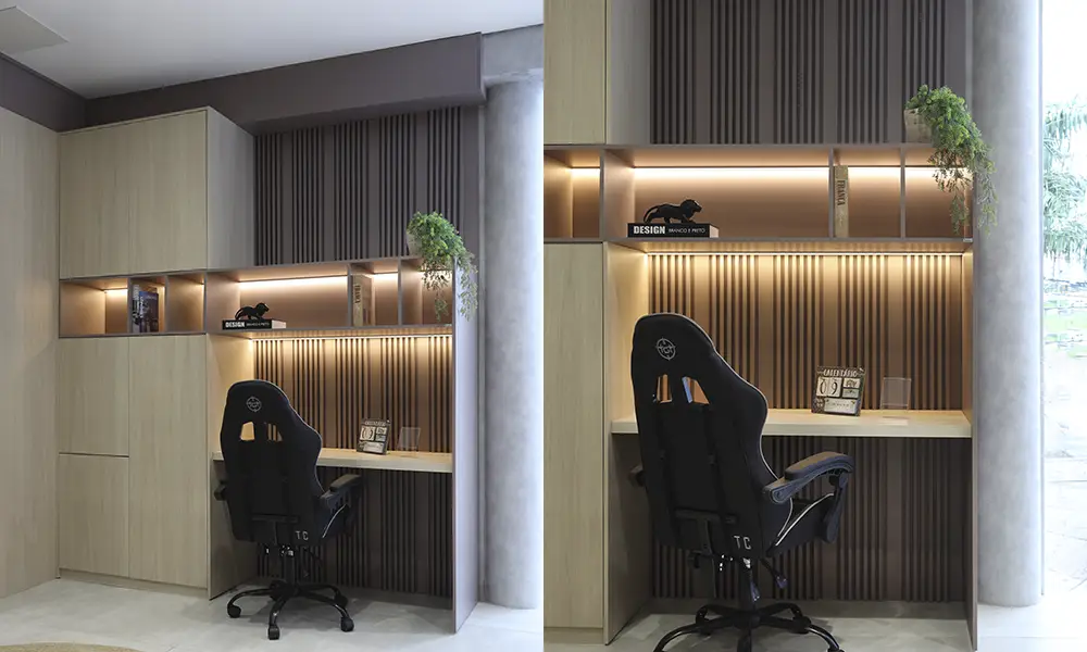 Ter pouco espaço não é sinônimo de improviso. Em muitos apartamentos, o home office divide área com sala, quarto ou até corredor, e é justamente nesses casos que o planejamento faz mais diferença. Quando cada centímetro é pensado para atender e acolher, o ambiente funciona sem parecer apertado.