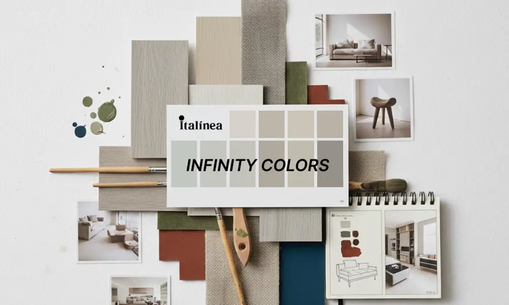 Na Italínea, por exemplo, a paleta Infinity Colors amplia essas possibilidades, permitindo trabalhar com tons neutros sofisticados ou inserir cores mais marcantes de forma controlada. Isso é especialmente interessante para quem quer sair do óbvio sem comprometer a elegância do espaço.